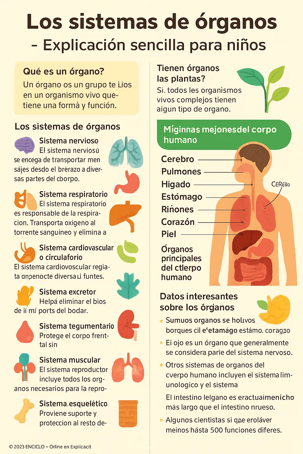 Los seres vivos, como los humanos, están formados por muchas partes que trabajan juntas.Algunas de estas partes se llaman órganos, y cuando varios órganos trabajan en equipo para realizar una función importante, forman un sistema de órganos. ¡Vamos a aprender qué hacen y por qué son tan importantes!