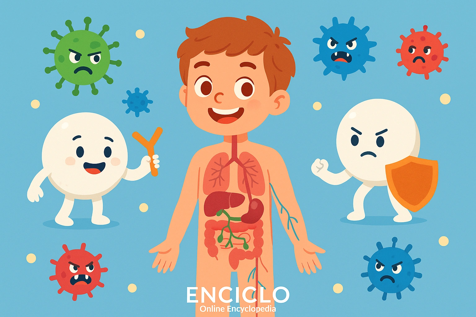 El sistema inmunitario es el escudo natural de nuestro cuerpo. Nos protege contra los pequeños invasores que pueden enfermarnos, como virus, bacterias y parásitos.